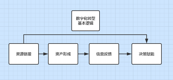 企業數字化轉型是指企業利用新一代數字技術,將某個生產經營環節乃至整個業務流程的物理信息鏈接起來,形成有價值的數字資產,通過計算反饋有效信息,最終賦能到企業商業價值的過程。