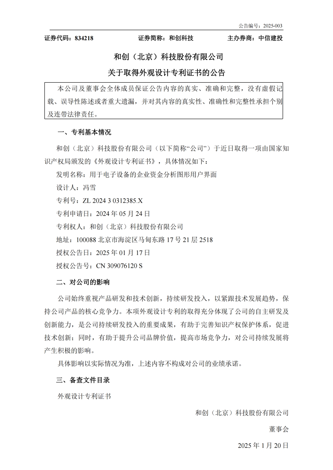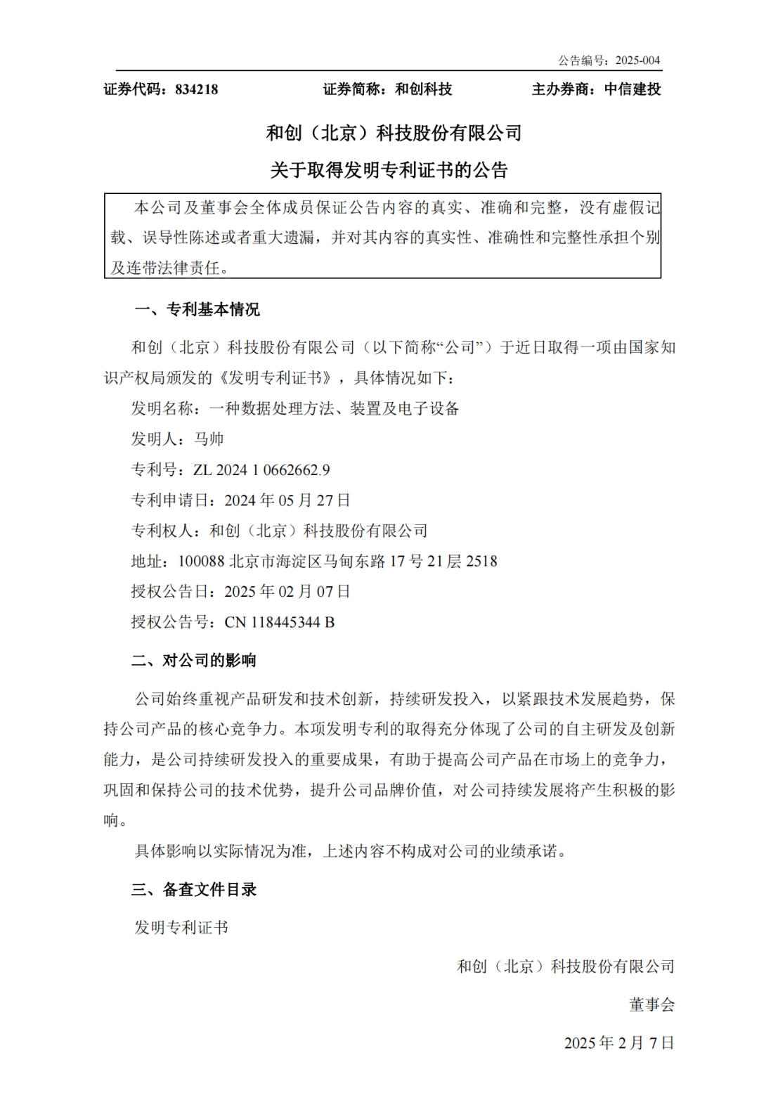 這兩項新專利的獲得,無疑為和創(chuàng)科技的產(chǎn)品線注入了更為強大的競爭力,也為用戶帶來了更為卓越的應用體驗。和創(chuàng)科技始終堅信,科技創(chuàng)新是推動企業(yè)高質量發(fā)展的核心動力。未來,和創(chuàng)科技將繼續(xù)秉承創(chuàng)新精神,不斷探索新技術、新產(chǎn)品,致力于為企業(yè)提供更加優(yōu)質、高效的科技服務,賦能企業(yè)資金管理智慧升級,相信在和創(chuàng)科技的不斷努力下,更多創(chuàng)新成果將不斷涌現(xiàn),為企業(yè)的發(fā)展注入源源不斷的智慧動力。