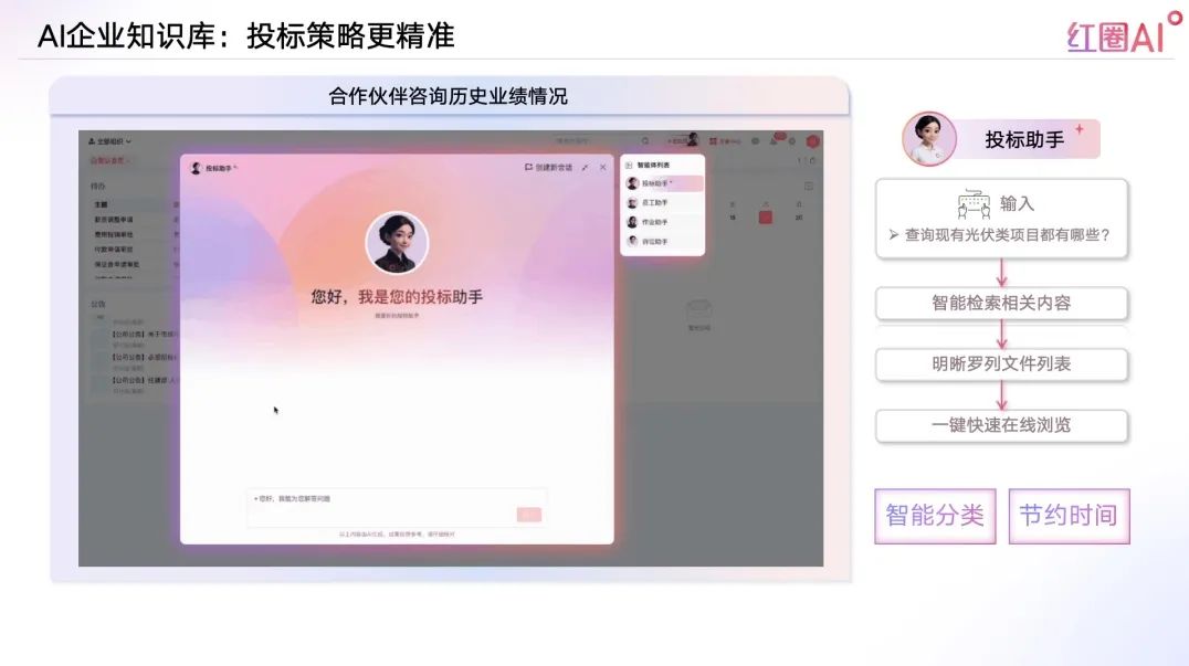 紅圈AI,以大模型+智能檢索技術為引擎,構建企業知識資產體系,實現“經驗即問即答”,推動企業從“人找知識”走向“知識找人”。