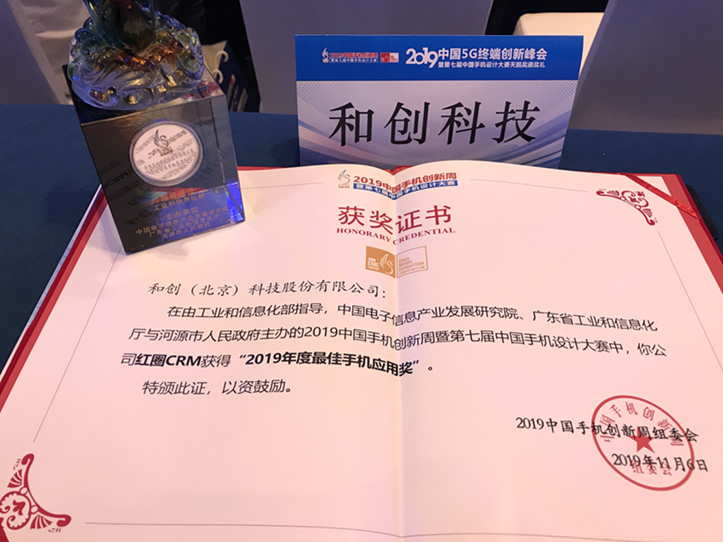 紅圈CRM榮獲2019中國5G終端創(chuàng)新峰會“2019最佳手機(jī)應(yīng)用天鵝獎”