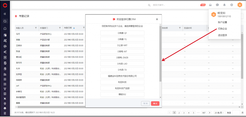 網(wǎng)頁端登錄系統(tǒng)后,支持 切換企業(yè),無需退出登錄重新登錄