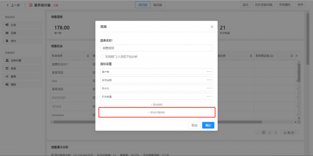 計算指標:首頁簡報組件,可支持指標間進行基礎四則運算,生成計算指標