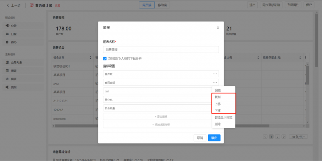 指標排序、復制:組件內指標支持排序和復制