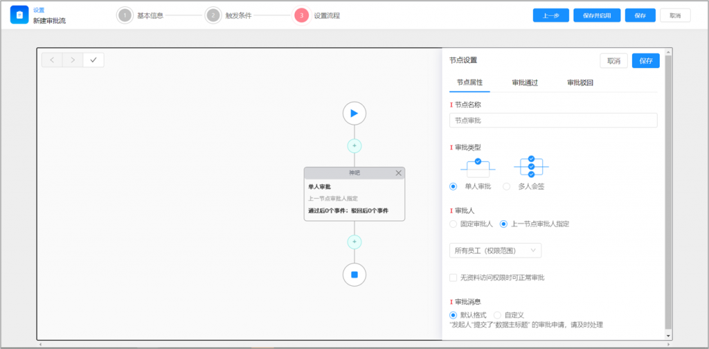 復制審批流時,支持將節(jié)點中的可復制信息帶入到新流程中,如節(jié)點名稱、類型、審批人、抄送人、意見和其他通用設置