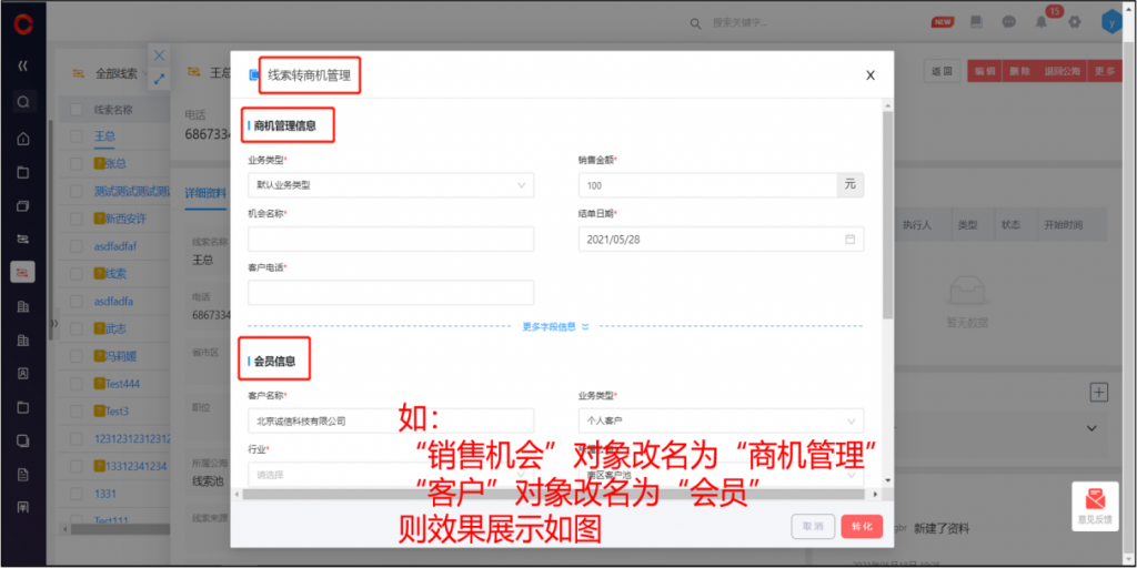 線索轉化頁面對象名稱變化