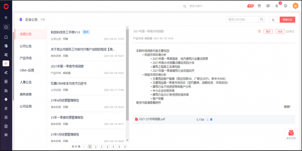 網頁端公告顯示優(yōu)化,無需打開新頁面就可瀏覽內容,列表和詳情頁在同一頁面顯示