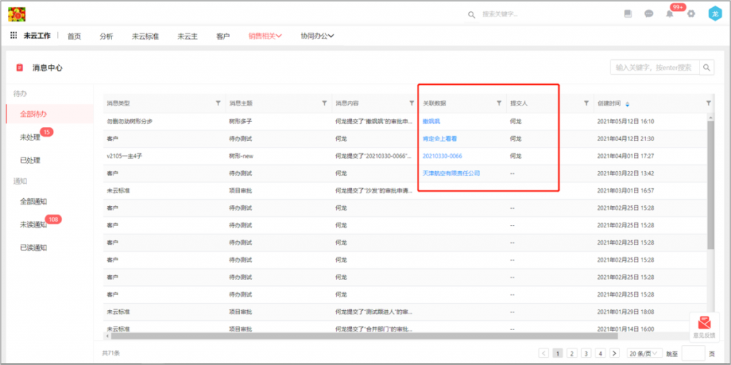 web端待辦顯示提交人和關聯(lián)數(shù)據(jù)標題:web端消息中心,待辦消息中增加提交人和關聯(lián)數(shù)據(jù)的信息顯示