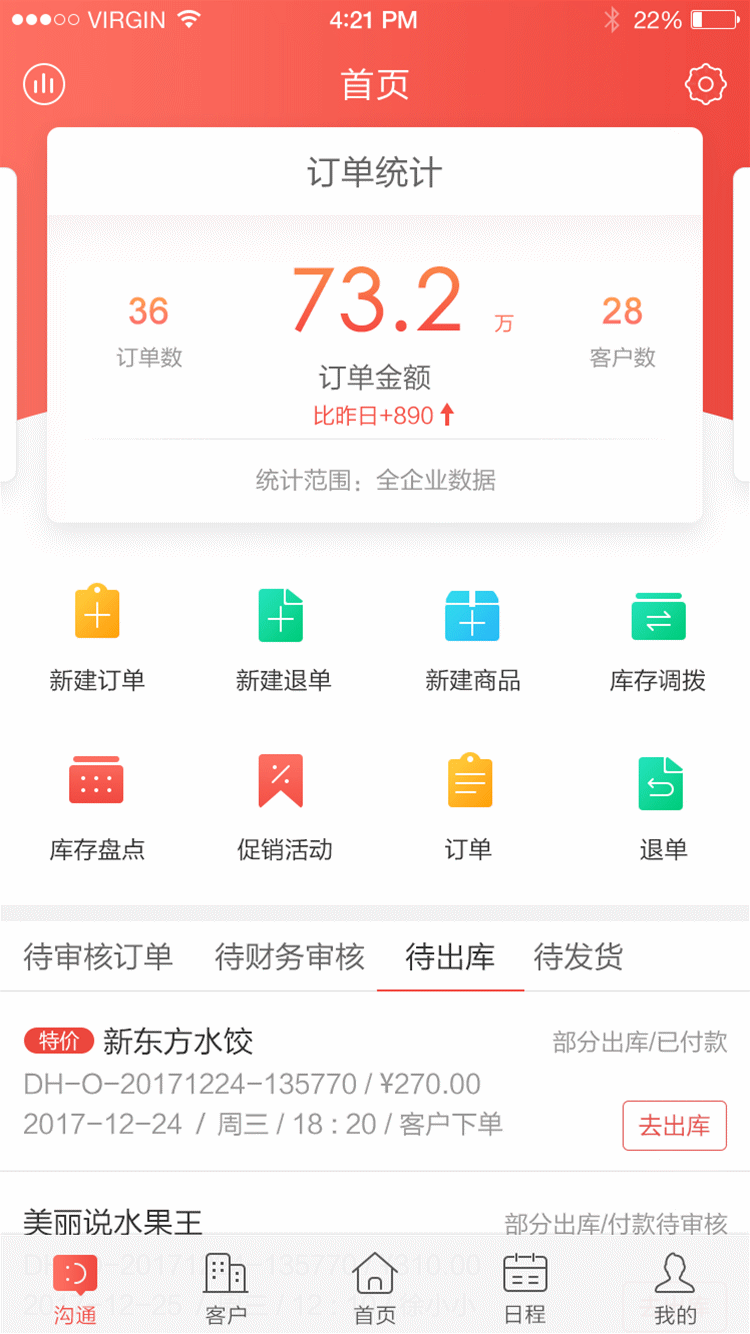 由于小罐茶的熱銷,對各門店的產品調配成為公司管理的重點,這就對公司的訂單流程提出了很高要求。以前,店長或渠道經理將門店的銷量、庫存和訂單數據通過電話或微信等渠道上報商務部,商務部需要在完成對各個門店的數據統計和核對后,再進行訂單處理,速度相對較慢,而且由于是人工統計,難免出現數據遺漏或錯誤的情況?,F在,店長和渠道經理通過紅圈訂單提交各個產品的銷量和庫存情況,并在手機上提交訂單,系統自動生成的數據報表,使得商務部非常清楚地了解各個門店的實時銷量和庫存數據,因此可以更加快速、科學地進行訂單處理。由于下單和處理流程都搬到了線上,不僅訂單流程得到了簡化,操作更加簡便高效,數據的準確性也得到了保障。