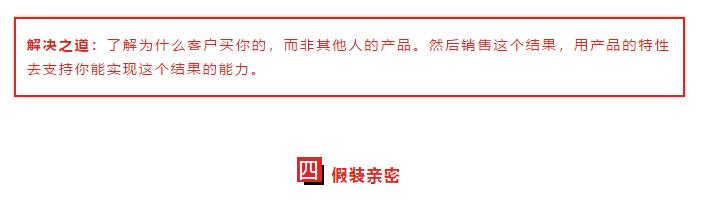 無論是是否喜歡,那一刻,你在客戶心中的位置是"一個人正在向我銷售東西",你正在進行一場激烈的戰(zhàn)斗來贏得信任。在這樣的環(huán)境下,你做的最錯的事情是通過一虛情假意的行為來套詞。