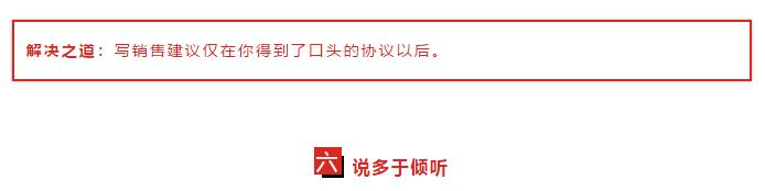 雖然建議偶爾會給銷售帶來機會,大多數(shù)情況下,需要流程的建議最好在確定了問題,同時也確定了解決方案的時候在進行。因為寫建議需要花時間和辛苦,除非你已經(jīng)在銷售過程中,否則這是一個壞的投資。