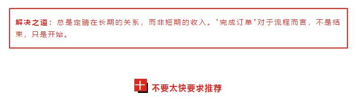 在你完成這個訂單之后,真正的工作才開始,因為你開始建立某種關(guān)系,以致于你可以產(chǎn)生后續(xù)業(yè)務(wù),以及推薦銷售,而這兩者比贏得新業(yè)務(wù)更容易,也更有利潤。