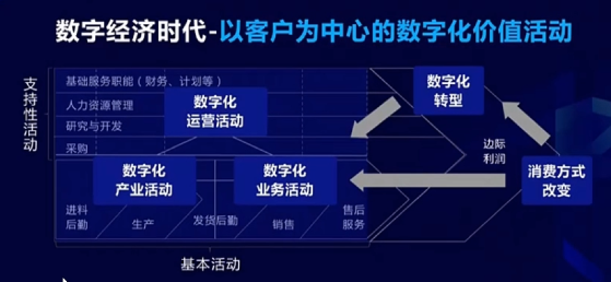 數(shù)字時(shí)代的來臨帶來的最大變化是什么?支持性活動(dòng)可以產(chǎn)生價(jià)值,基本活動(dòng)也可以產(chǎn)生價(jià)值,整個(gè)上下游還是可以產(chǎn)生價(jià)值。最后發(fā)現(xiàn)我們產(chǎn)生價(jià)值的空間變多了。原來只在一條鏈上,而且這條鏈上只有基本活動(dòng)產(chǎn)生價(jià)值,其他只是改變成本和價(jià)值??墒菙?shù)字技術(shù)來了之后,所有的環(huán)節(jié)都可以產(chǎn)生價(jià)值,無論是支持活動(dòng)、基本活動(dòng),還是上下游的產(chǎn)業(yè)活動(dòng)。我們告訴各位,這是源于消費(fèi)方式的改變。