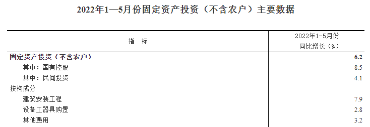 國家統(tǒng)計(jì)局:1-5月基礎(chǔ)設(shè)施投資同比增長(zhǎng)6.7%