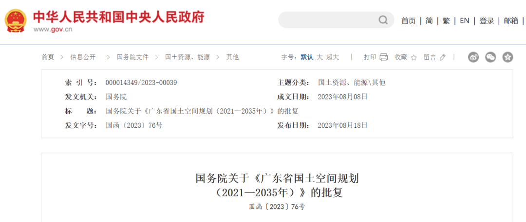 《廣東省國土空間規劃(2021—2035年)》已經國務院批復同意。