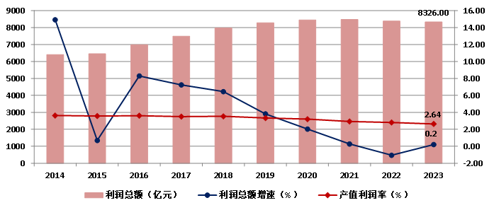 圖9 2014-2023年全國建筑業(yè)企業(yè)利潤總額及產值利潤率
