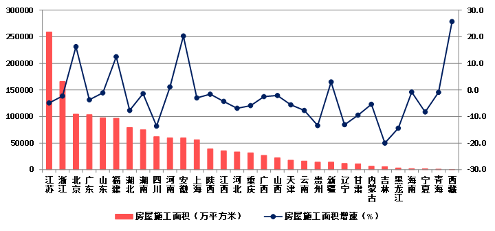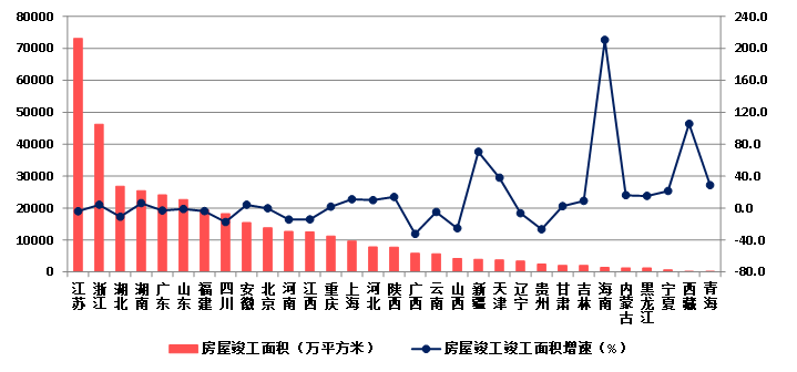 (八)25個地區(qū)房屋建筑施工面積下降 瓊、藏房屋建筑竣工面積增速顯著