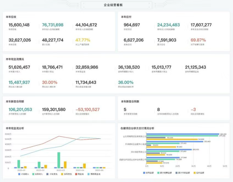 更關(guān)鍵的是 “數(shù)據(jù)穿透” 能力:管理層可以從總部層面,穿透到分子公司,再下鉆到具體項(xiàng)目,實(shí)時(shí)查看進(jìn)度、成本、資金等維度的動(dòng)態(tài) —— 比如總部能實(shí)時(shí)掌握所有項(xiàng)目的現(xiàn)金流情況,分子公司能監(jiān)控下轄項(xiàng)目的分供方付款進(jìn)度,項(xiàng)目端能追溯每一筆成本的來(lái)源。這種 “總部 - 分子公司 - 項(xiàng)目” 三級(jí)透明化管理,不僅滿足了央企國(guó)企對(duì) “運(yùn)營(yíng)透明度”“集團(tuán)化管控” 的嚴(yán)格要求,還能為審計(jì)合規(guī)、重大決策提供可信的數(shù)據(jù)依據(jù),完美契合 “強(qiáng)總部、精項(xiàng)目” 的管理導(dǎo)向。